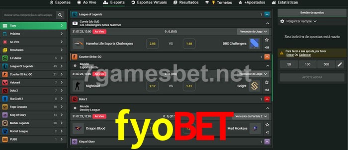 O fyobet oferece uma grande seleção de opções de apostas em e-sports com probabilidades competitivas
